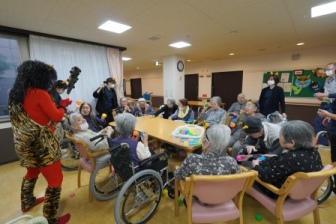 節分レク 節分レクを行いました。 今年も職員が鬼に扮して登場し、会場は大いに盛り上がりました。 突然現れた鬼に驚かれる方もいらっしゃいましたが、皆さま笑顔で豆まきを楽しまれていました。 「鬼は外、福は内」と元気な掛け声が響き、自然と会話も弾みました。