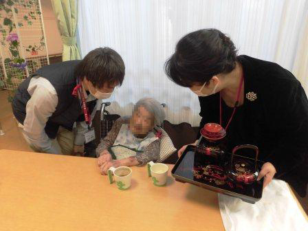 無事に全ての入居者の方への新年の挨拶及びお屠蘇を行うことができました。