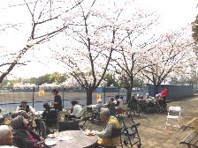 午後2時より、屋外に出て、お茶会を前に、体操したり、歌を歌ったりしました。