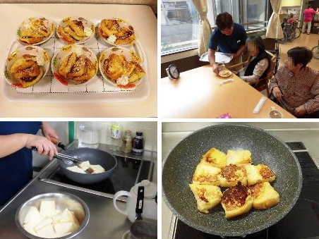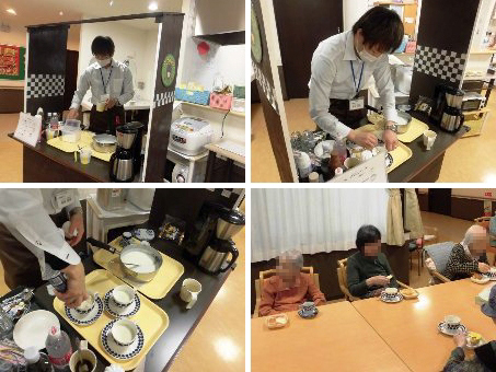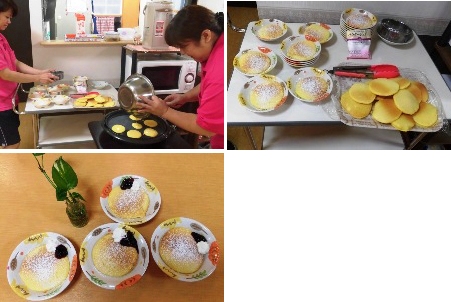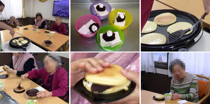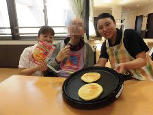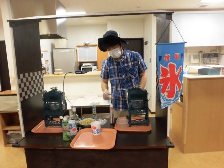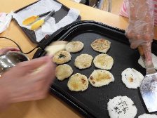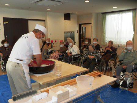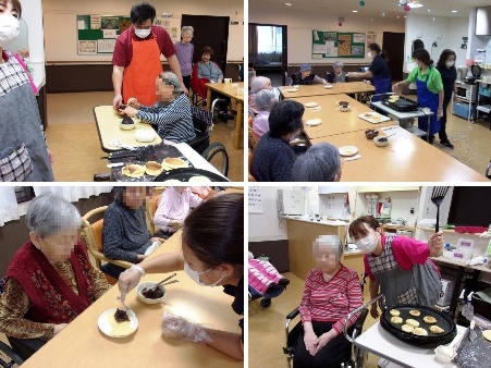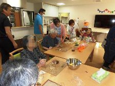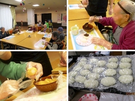 まず、午前中にお茶会で食べる「ふくれがし」を入居者の皆様と一緒に作りました。