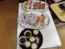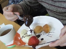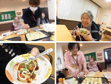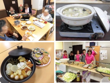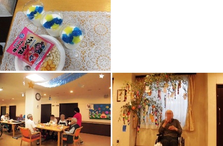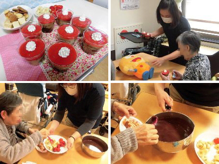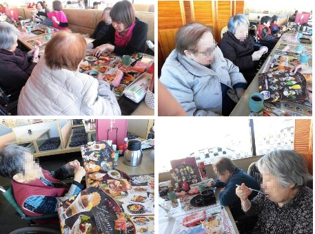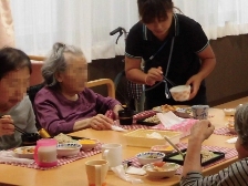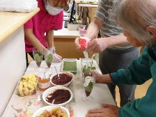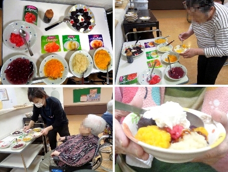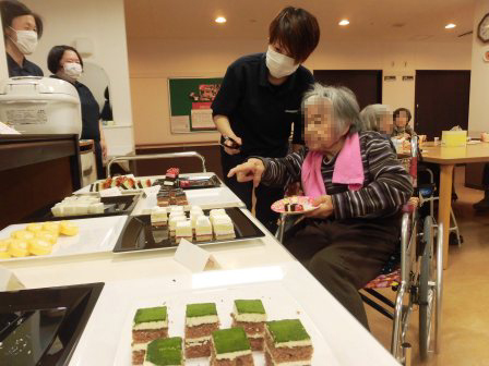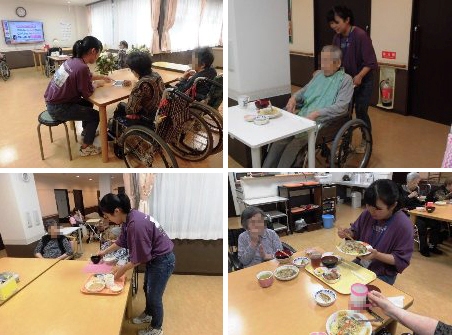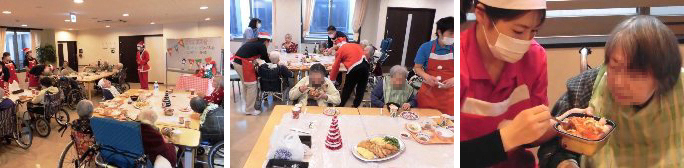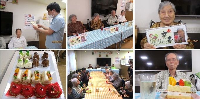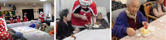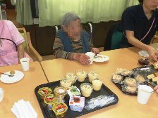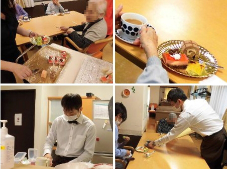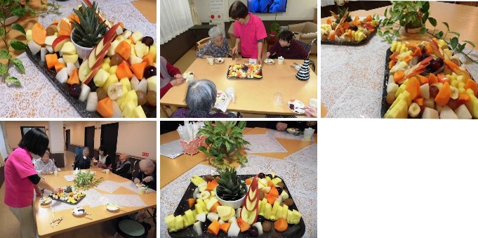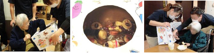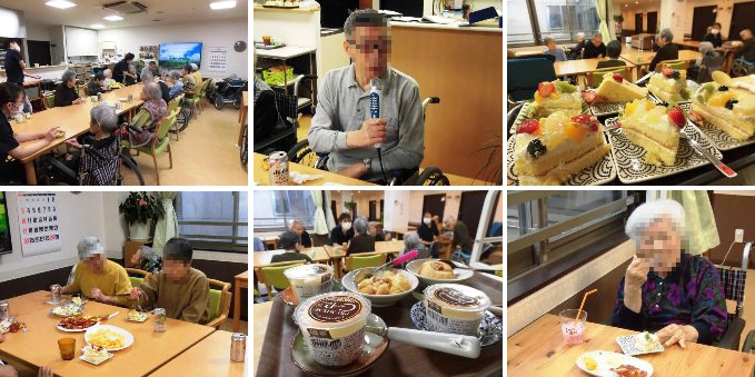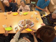 ユニット毎に実施しました。オードブルや海鮮丼を食べたり、ケーキやジュースで、