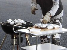 当日は、焼きそばやフランクフルトなどをユニットで食べていただき、