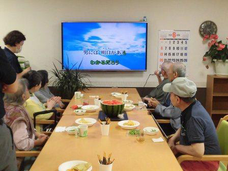 なつかしい曲が流れると、昔を思い出されるご様子で、皆さまマイクを手に取り、次々と歌われるなど積極的に参加されていました。会場には穏やかな時間が流れ、思い出に浸るひとときとなりました。