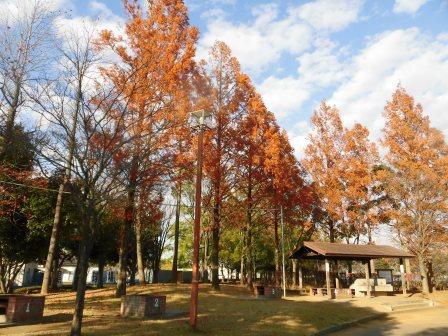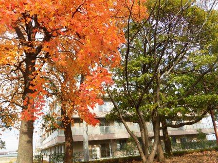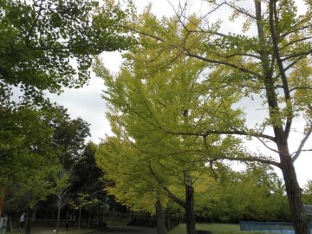 秋を感じ、気分転換をして頂こうと「散歩レク」を企画しました。ソーシャルディスタンスも考慮し、3人くらいずつで順番に、隣接するしらこばと運動公園へ出掛けました。10月中旬でしたが、この日に限って少し寒く、小雨が降りそうな天気でした。中止も検討しましたが、その日の職員を多めに配置していたので、できる範囲でやろうということになり、実施しました。