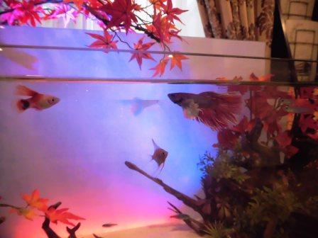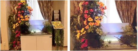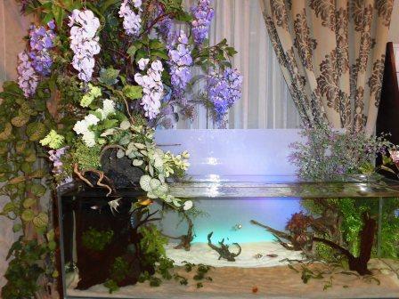 熱帯魚が間近で観賞でき、今の時期は桜の花が豪華にレイアウトされ、