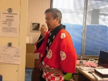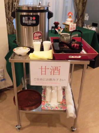 年始の挨拶とともに甘酒をお一人お一人にお配り致しました。