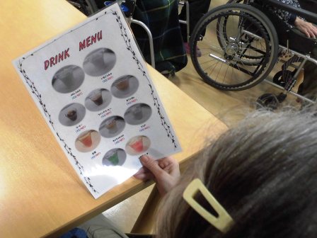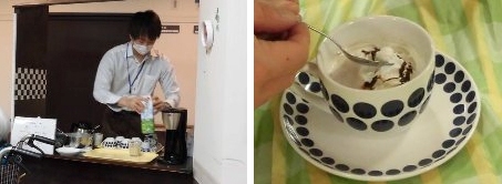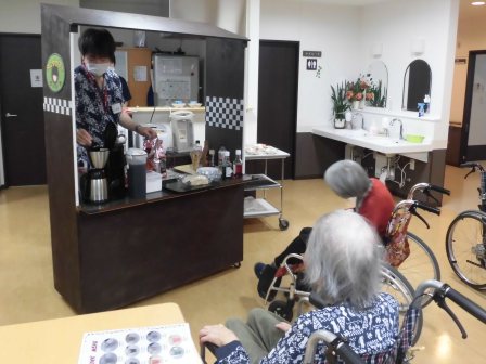 外出レクが出来ない中、外にテーブルを出し、お茶会を企画しました。