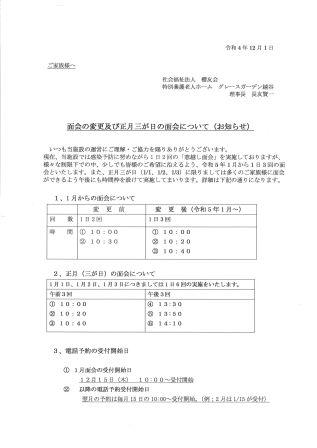 (1/1~1/3の3日間のみ、午後の面会時間を設けます。)