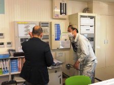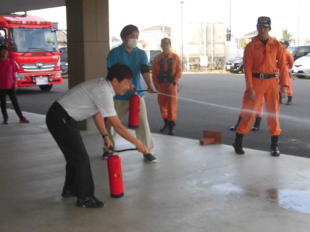 今回も、防災設備の保守委託会社の方の立会のもとで、消防訓練を実施しました。
