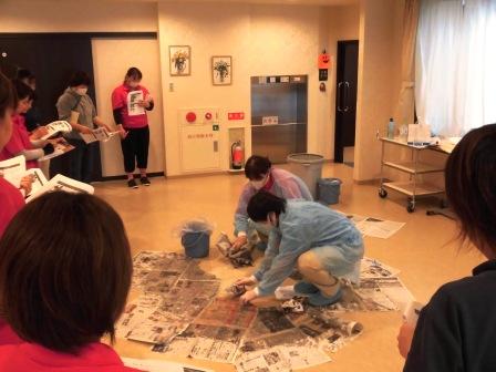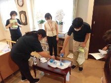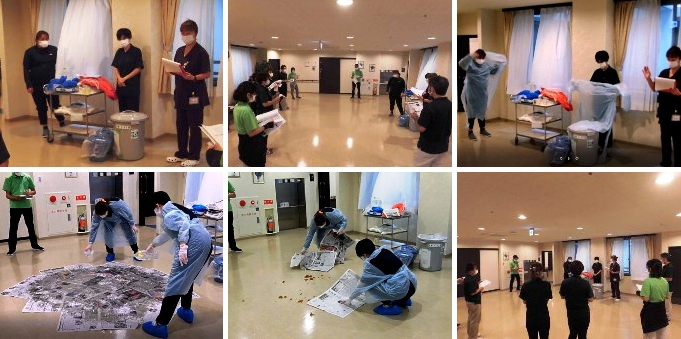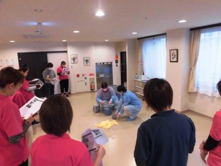 また、この後、各ユニット毎に、職員全員が参加し、嘔吐物の処理等の確認をしました。