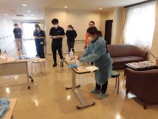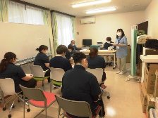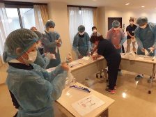 職員の定着が進み、当施設でのノロウイルス対応の研修の経験者が増えたこともあり、これまで看護職員が行っていた研修の進行や対応の説明も介護職員を中心に行いました。これまで感染予防研修の中心となっていた看護職員からも「とても良く進行や説明ができており、私は最後に一言を言うくらいで、いなくても十分なくらいでした。」と報告を受けております。
