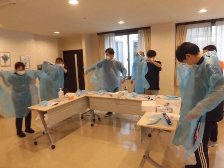 ノロウイルスの対応セットは、各ユニットに配置しており、毎月の感染予防委員会の際に所在の確認などを行っております。ノロウィルスは、開所以来一度も発生しておりませんが、毎年研修を行い、万が一の時に対応できるように取り組んでおります。