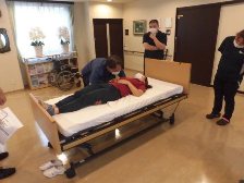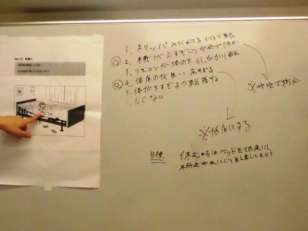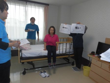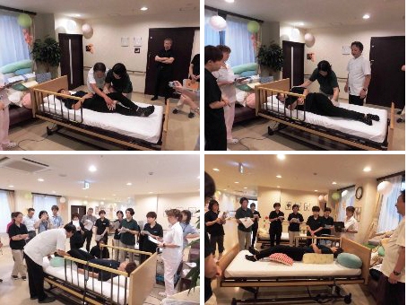 今回の褥瘡予防研修は、ポジショニングの勉強をしました。