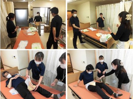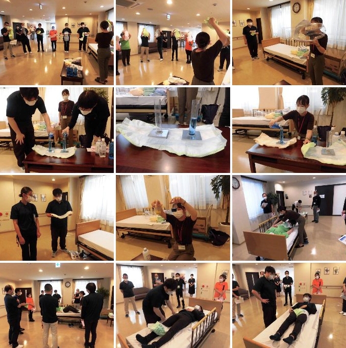 新入職員を対象に、少人数でのオムツ類の研修を行いました。