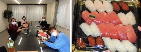事務室職員と医務室職員は、少し高価なお弁当を購入し、お昼休憩時間に職場内で黙食で頂きました。事務室は焼肉弁当、医務室は寿司を頂きました。
